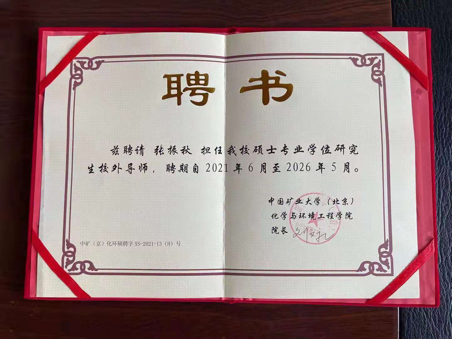 公司張振秋董事長被中國礦業大學(北京)聘任為碩士研究生校外導師。